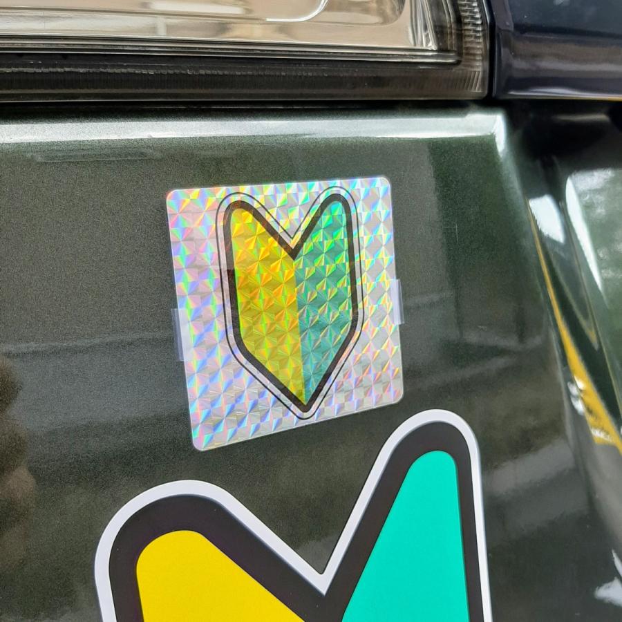 初心者マーク ステッカー シール ミニ 車 バイク 2枚セット かわいい ホログラムレンズ 6 3 6 3